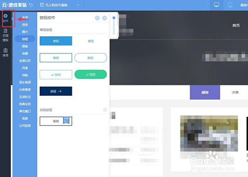 选择“插手组件”可以自由拖拽组件对网页进行设计。