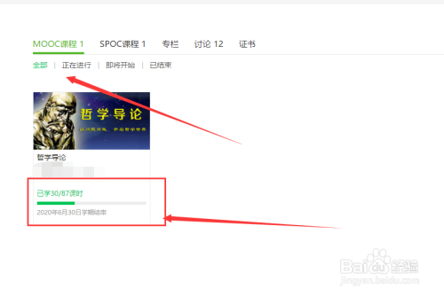 第三:找到呈现问题的【课程】点击进入:看完进度不更新。