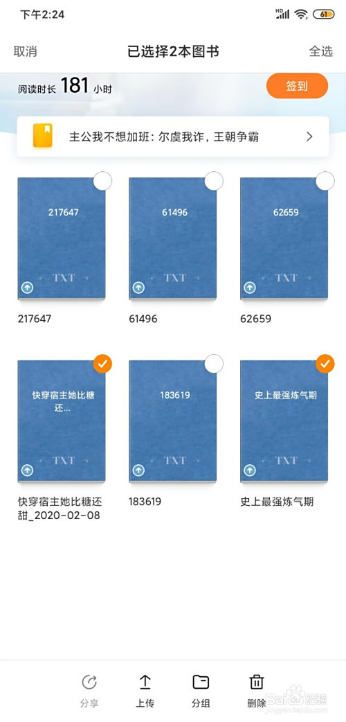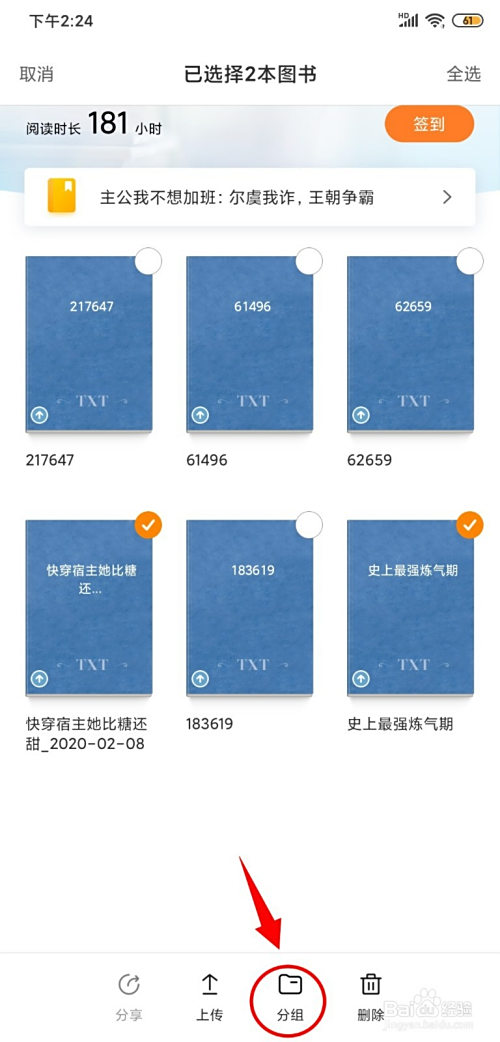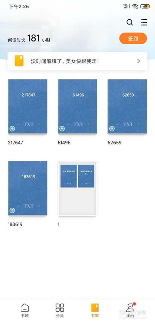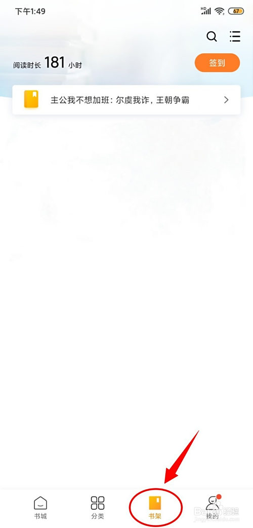 进入APP后,点击页面下方的【书架】进入书架界面;