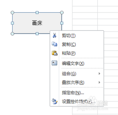 7.选中“画床”控件,然后点击鼠标右键,选择“指定宏”。
