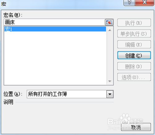 4.写明VBA代码名称,然后点击“建立”按钮。