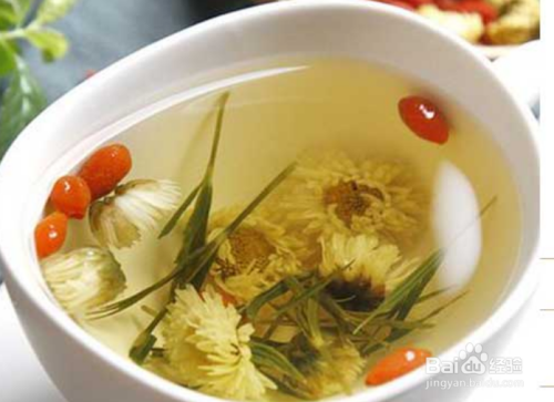 可以放入适量枸杞夹杂泡饮,祛怒火明目菊杞茶,清爽润口。