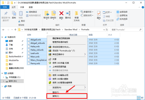 6、打开portraits文件夹后,将方才复制的内容拷贝进来,替代原有文件。
