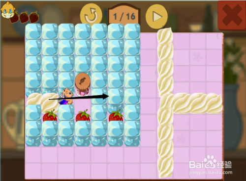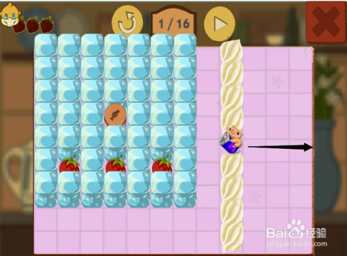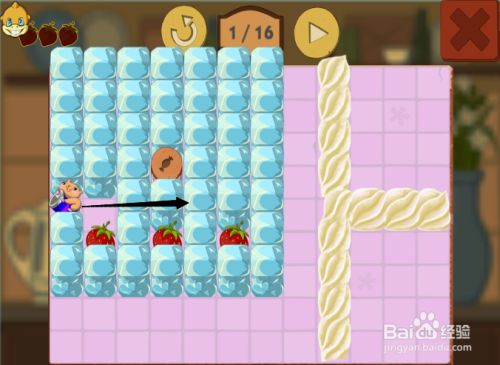 第七步:滑动最后一次松鼠,到黑色箭头处过关。
