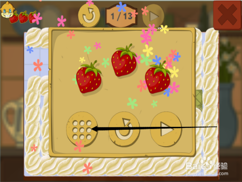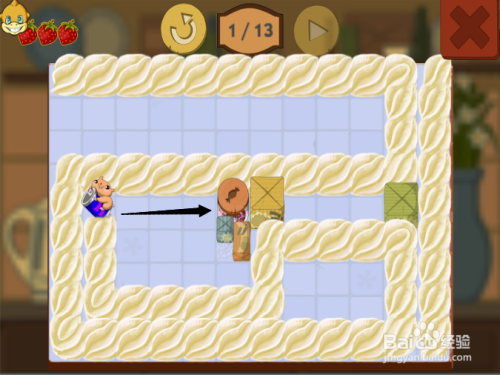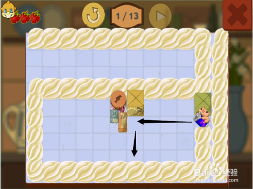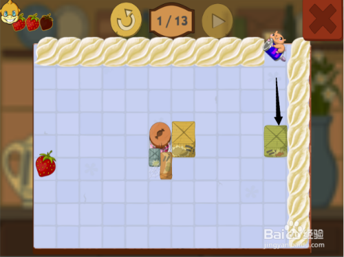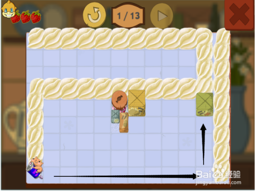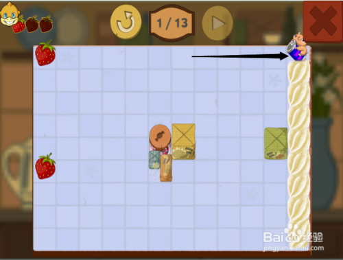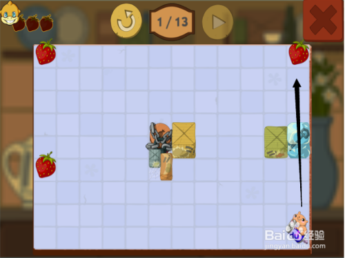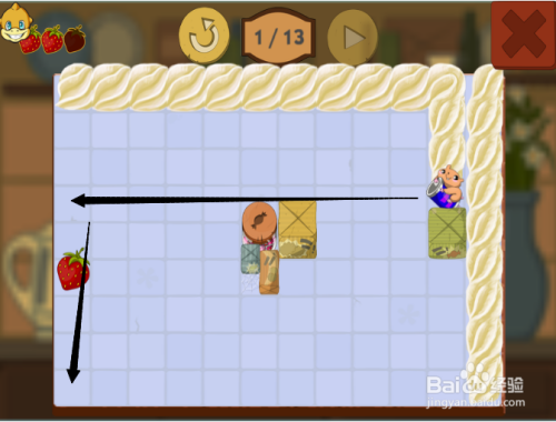 第五步:按照黑色箭头,滑动第三次松鼠,吃到第三颗草莓。