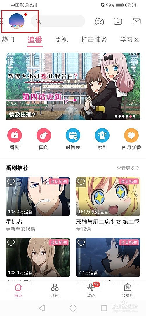 第一步打开哔哩哔哩,点击左上方的列表图标,如下图所示: