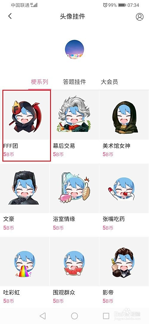 第五步可以利用B币采办头像挂件,也可以利用积分兑换,按照需要利用,如下图所示: