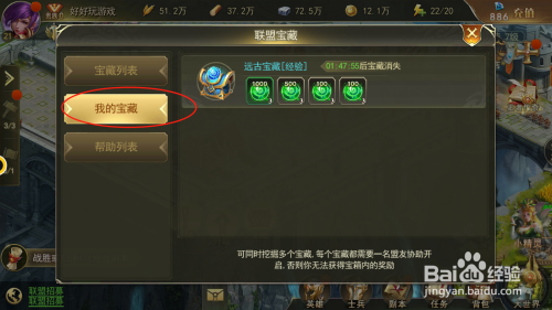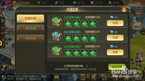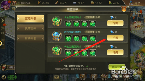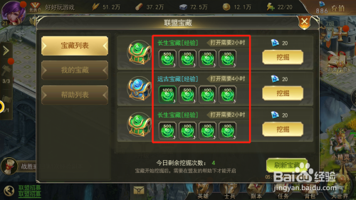 点击之后,在我的宝藏里可以看到残剩时候,时候到了,就可以直接领取