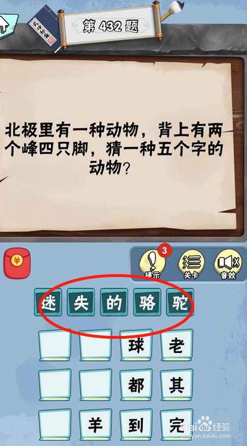脑子急转弯达人游戏Lv6绝代奇才第432关内,提问海说神聊极有一种动物,背上有两个峰四只脚,猜一种五个字的动物。