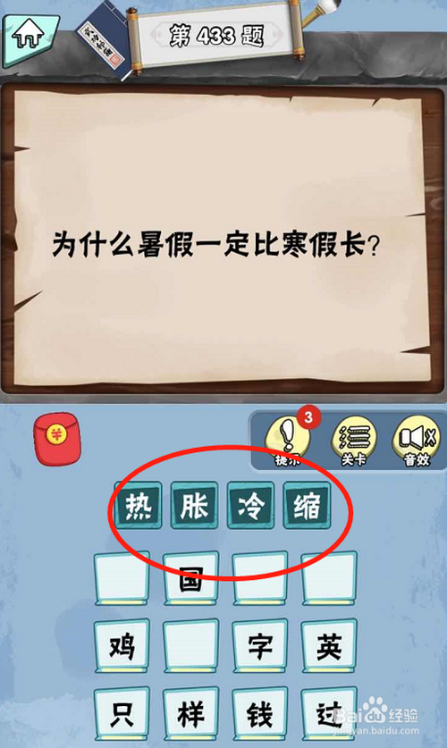 脑子急转弯达人游戏Lv6绝代奇才第433关内,提问为什么暑假必然比寒假长。准确谜底是“热胀冷缩”,暑假比力热,所以时候长,寒假比力冷,所以时候短。