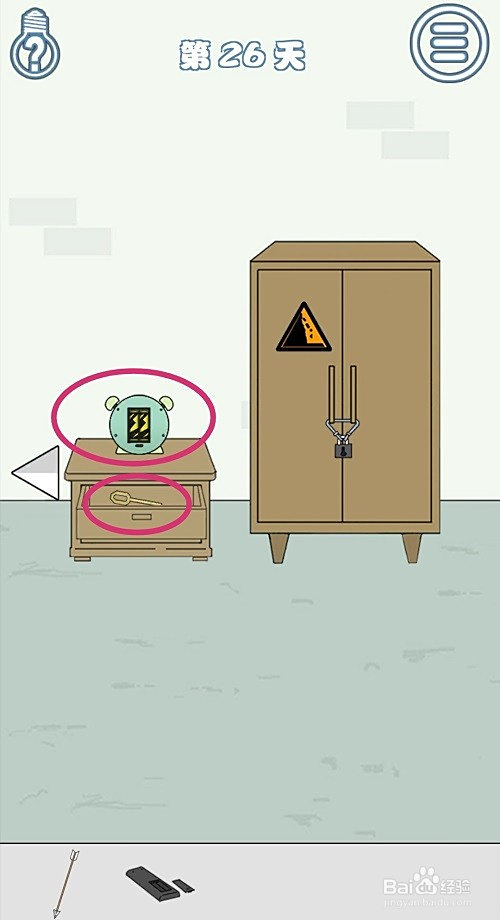 点击闹钟,可以拿到闹钟里的电池;