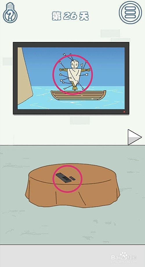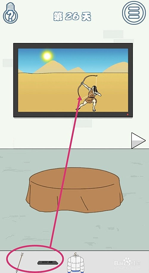 用【遥控器】换两次台,把【箭】给弯弓射日的人,就会射下太阳。