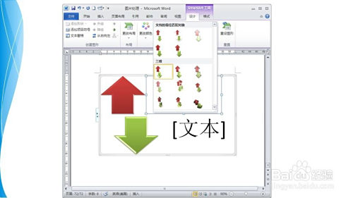 在编纂区呈现一个反标的目的箭头图,需要对其进行一些处置,以更美不雅。在SmartArt 东西栏中选择设计院选项卡——样式组,选择本身的颜色