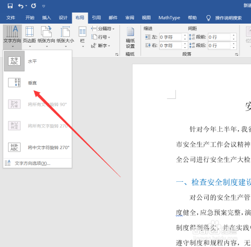 接着在Word页面就可以看到文字按垂直偏向显示了