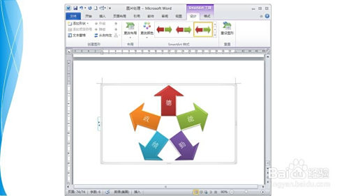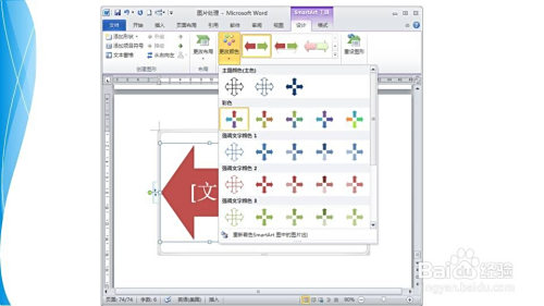 在编纂区呈现一个分叉箭头图,需要对其进行一些处置,以更美不雅。在SmartArt 东西栏中选择设计院选项卡——样式组,选择本身的颜色