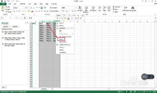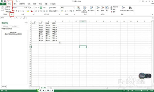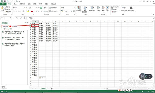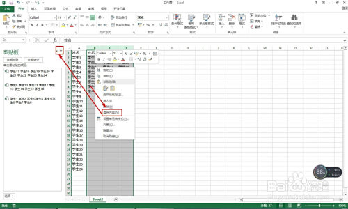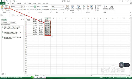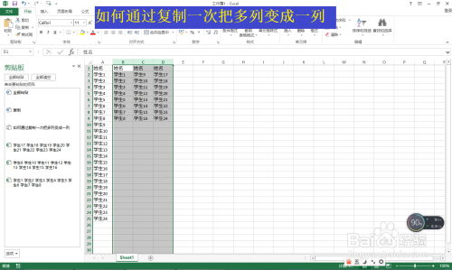 接着选择每一列的学生姓名——点击起头复制,每列复制一次,这时会看到剪切板那边有次数显示。