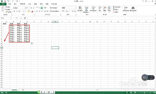 如图所示把多列的学生姓名一会儿复制粘贴到A列归并在一路。