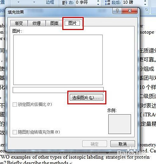 在填充结果窗口中选中“图片”选项,并点击“选择图片”按钮。