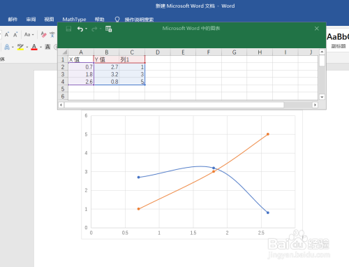 接着就会弹出一个Excel表,和对应的散点图,只需要在Excel表中更改填入本身的数据,散点图就会对应主动更新