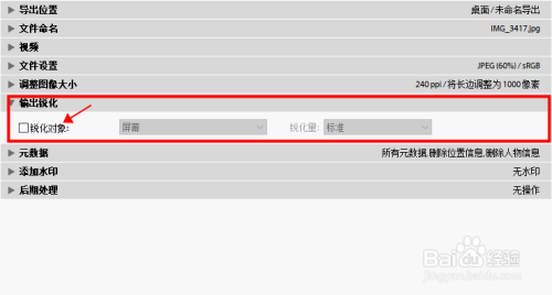 输出锐化,勾选后会按照选项设置参数对照片进行锐化处置。