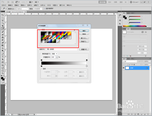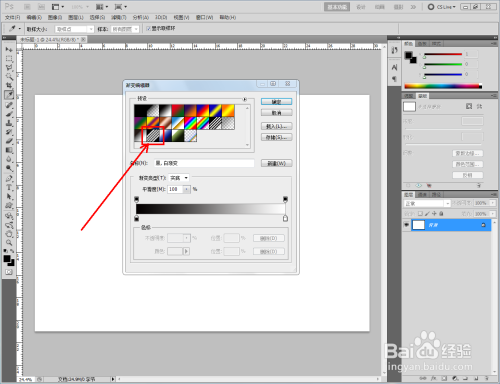点击【渐变东西】-【线性渐变】,点按【可编纂渐变条】,弹出渐变编纂器;