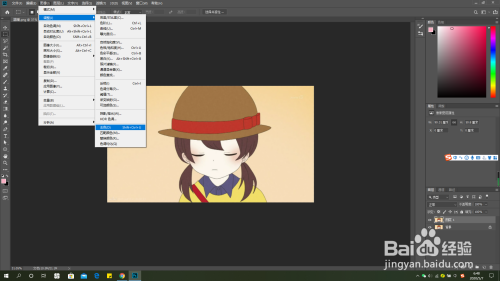 上方菜单栏中选择图像---》调整---》去色(快捷键:shift + ctrl + U)