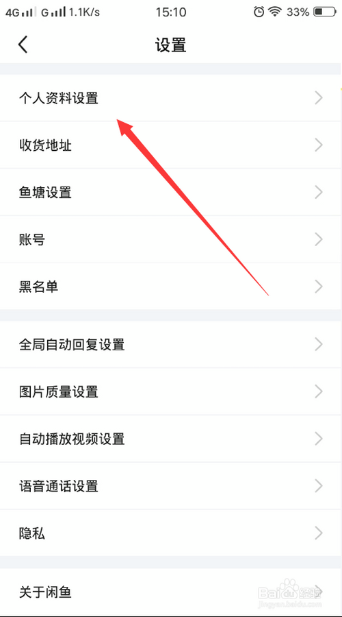 接着,在设置界面中,我们找到“小我资料设置”选项卡,点击进入选项卡界面。