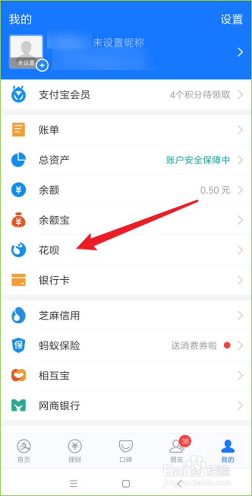 3、点击花呗;