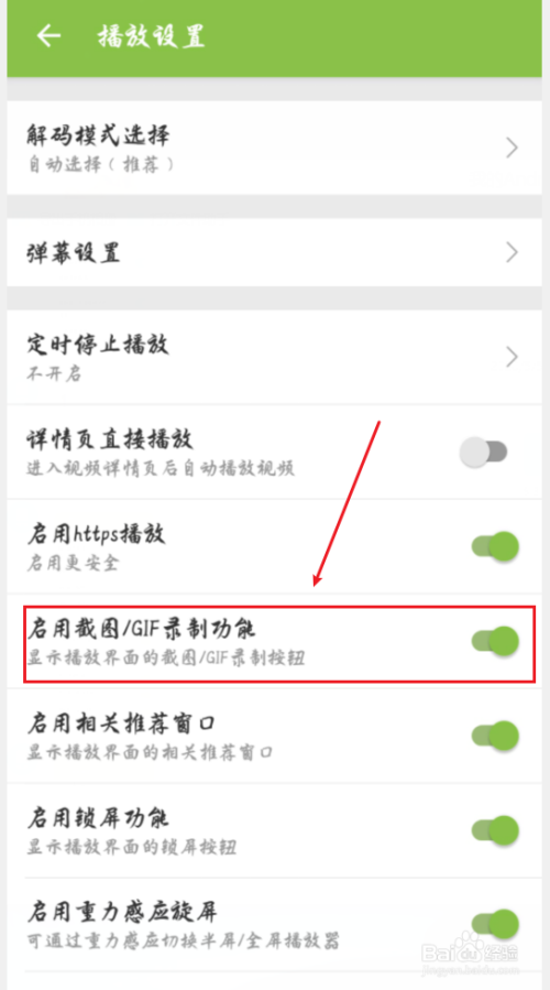 接着点击详启用截屏/GIF录制功能选项旁边的按钮就可以完当作开启了。