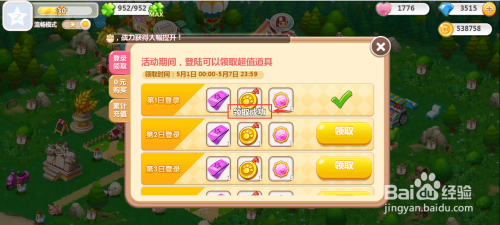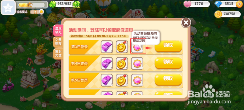 4、领取当作功,后面的领取按钮酿成了绿色的对勾,我们就获得了勾当首级挑战券。