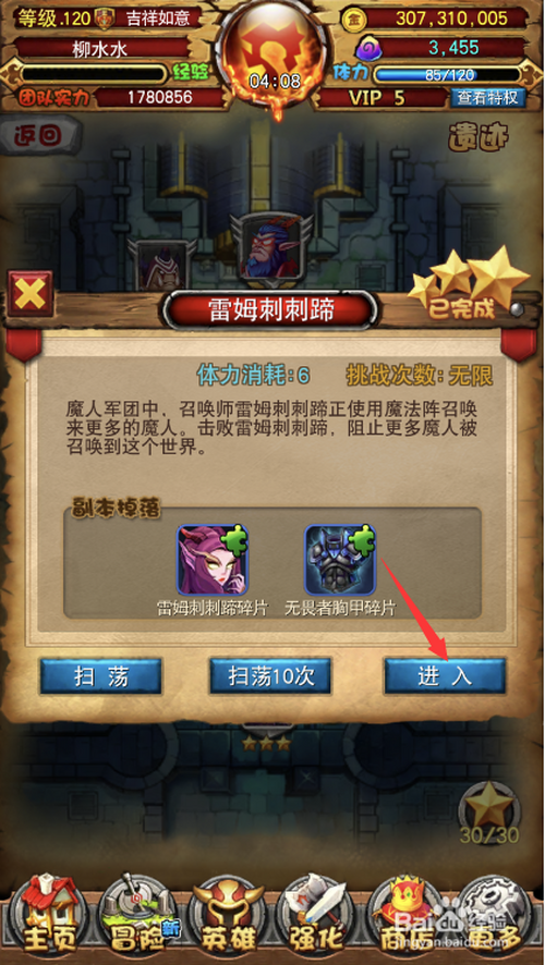 点击游戏本家儿菜单冒险,再点击子菜单副本按钮。