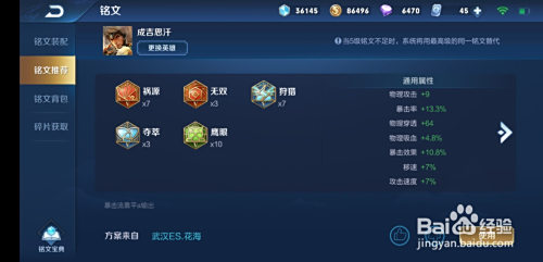 祸源*7、无双*3、打猎*7、夺萃*3、鹰眼*10,增添物理进犯、暴击率、物理穿透、物理吸血、暴击结果、移速、攻速。