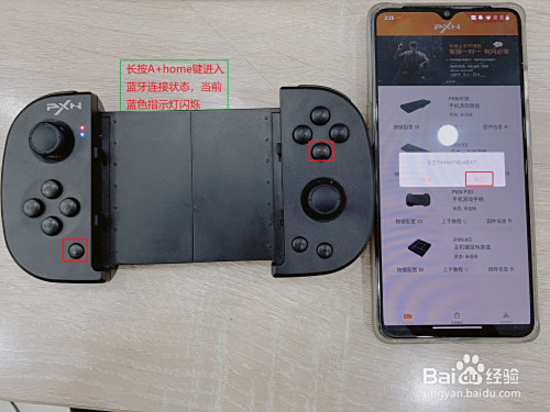 手机开启蓝牙,手柄长按【A键+home键】进入蓝牙毗连状况,当前蓝色指示灯快速闪灼暗示正在毗连,然后打开【莱仕达智玩】快速主动匹对。