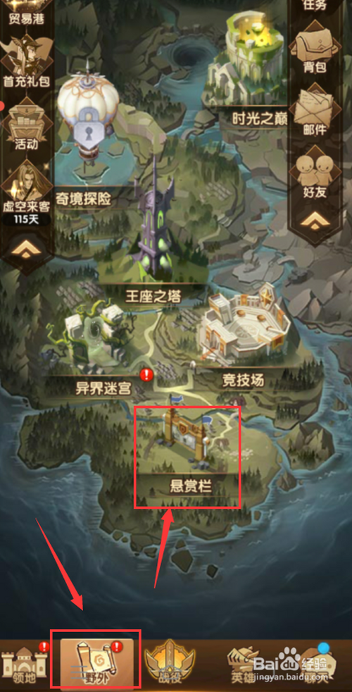 第四:返回顾页点击【野外】按钮选择【赏格栏】点击进入。