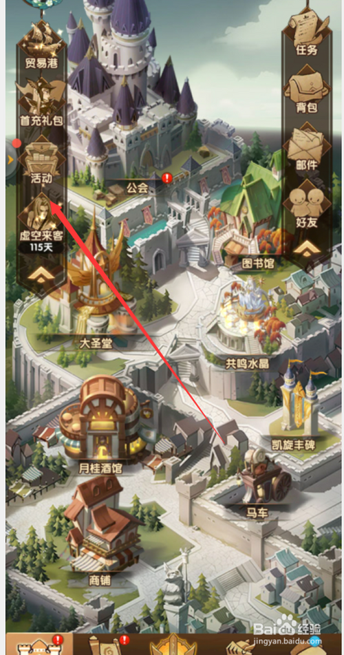 第一:打开剑与远征客户端点击首页左上角的【勾当】选项。