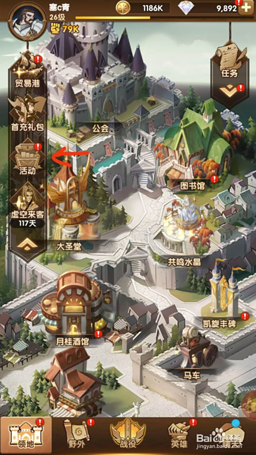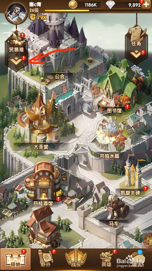 打开手机后进入剑与远征游戏,点击左侧商业港下面的箭头图标