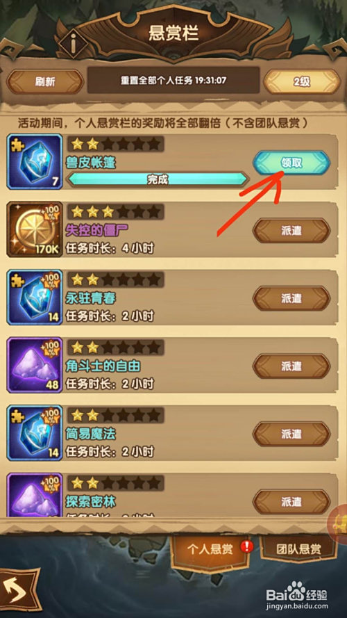 期待使命完当作后,点击“领取”,就可以领取使命奖品了