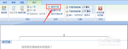 点击“封闭页眉和页脚”,就设置好首页的页眉了