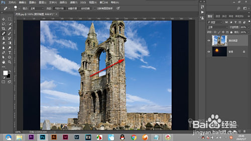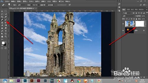 1.起首我们导入一张素材图片,将边缘添加蒙版擦除出来。