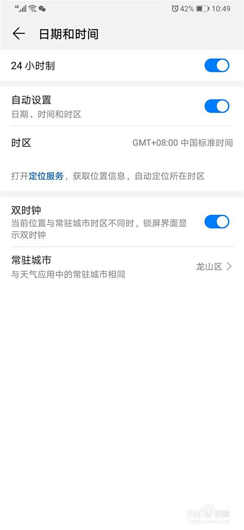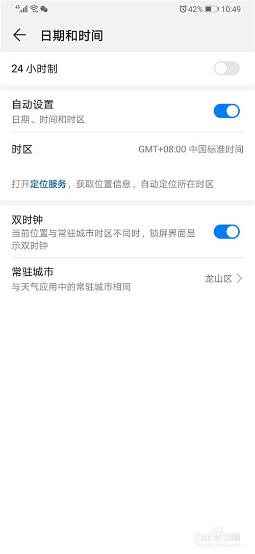 点亮之后,返回界面就可以看到24小时的时候设置了。
