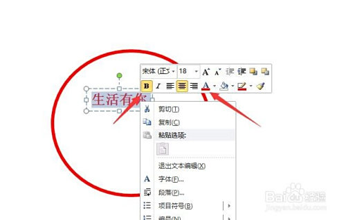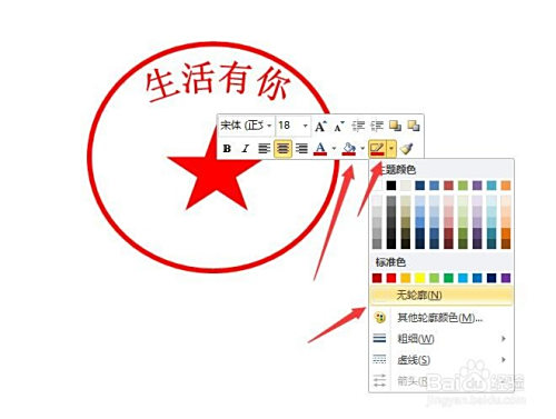 选中输入的字体,右键单击,字体颜色更改为红色,无颜色填充,去除轮廓。