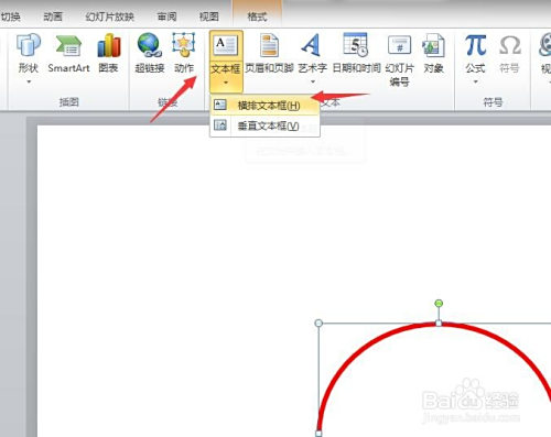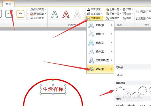 选中格局——文本结果——转换——上弯弧,调整好本身的位置。