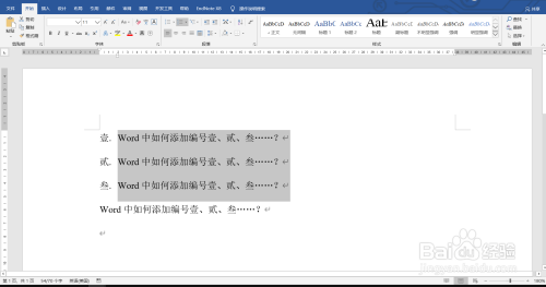 点击确定后,我们的文本前就有了壹、贰、叁……编号。