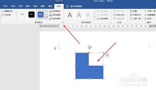 插入L形当作功,选中插入对象,点击“格局”,并点击“形式样式”。