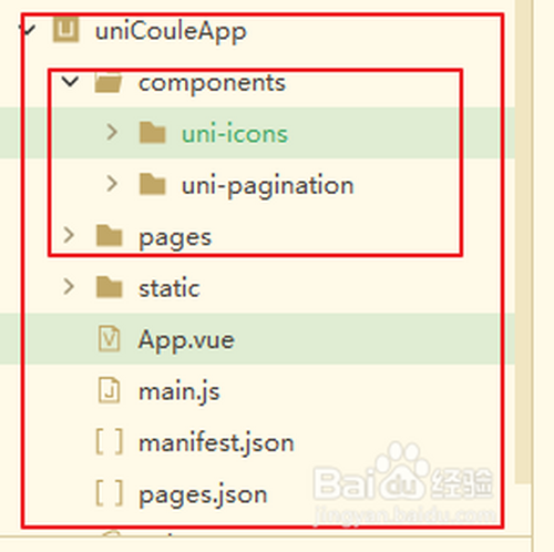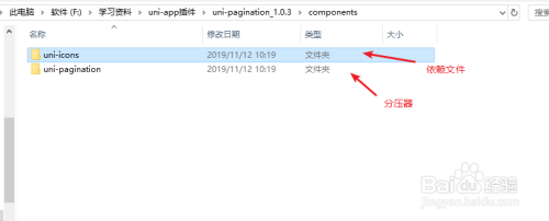 解压好之后把uni-pageination(分页器组件,用于展示页码、请求数据等)、uni-icons方针文件复制粘贴到项目中