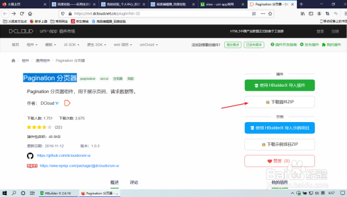 在uni-app官网网站中去进行下载Pagination 分页器组件