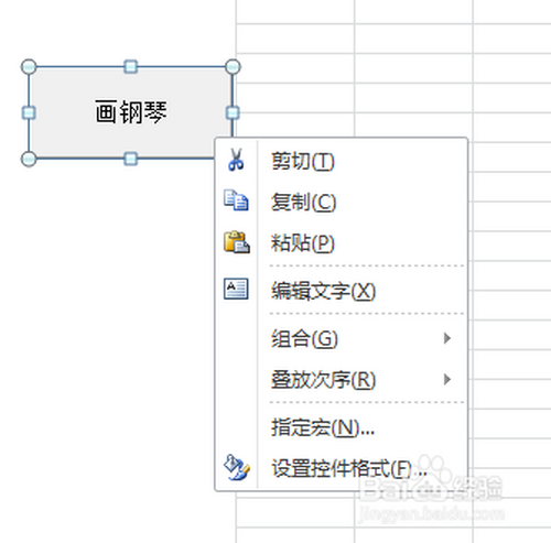 7.选中“画钢琴”控件,然后点击鼠标右键,选择“指定宏”。