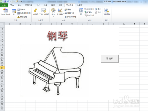 6.点击插入一个按钮控件,并定名为“画钢琴”。