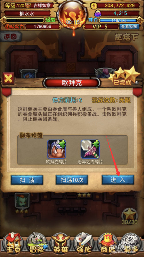 3.打开欧拜克副本,点击进入按钮。
