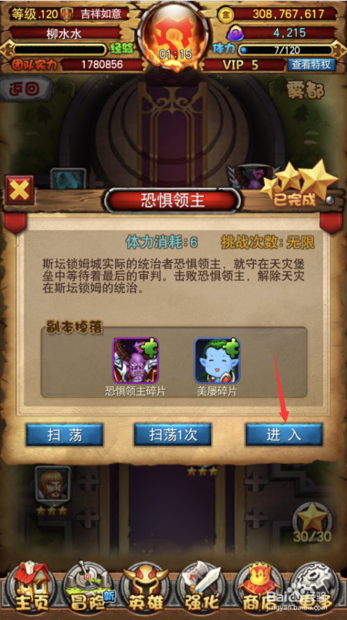 3.打开惊骇领本家儿副本,点击进入按钮。